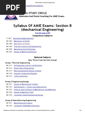 Amie section b syllabus for mechanical engineering. Get amie full video lectures notes syllabus study materials 9015781999. Amie is a b tech level examination in engineering recognized by all state governments central govt aicte upsc etc. Amie syllabus 2020 candidates willing to pursue their career in engineering and wishes to study courses offered by amie should find out the relevant syllabus to study.