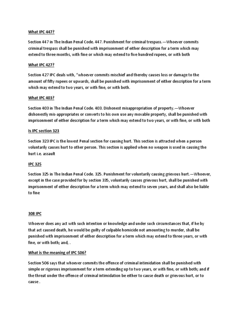 Ipc section 427. Description of ipc section 427 according to section 427 of indian penal code whoever commits mischief and thereby causes loss or damage to the amount of fifty rupees or upwards shall be punished with imprisonment of either description for a term which may extend to two years or with fine or with both. Mischief causing damage to the amount of fifty rupees. Mischief causing damage to the tune of fifty rupees or more has been made punishable under this section.